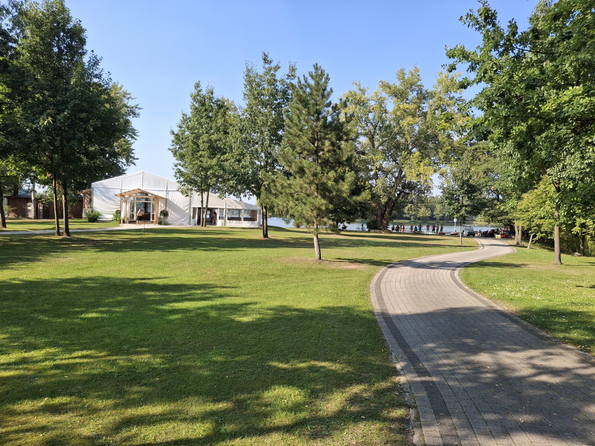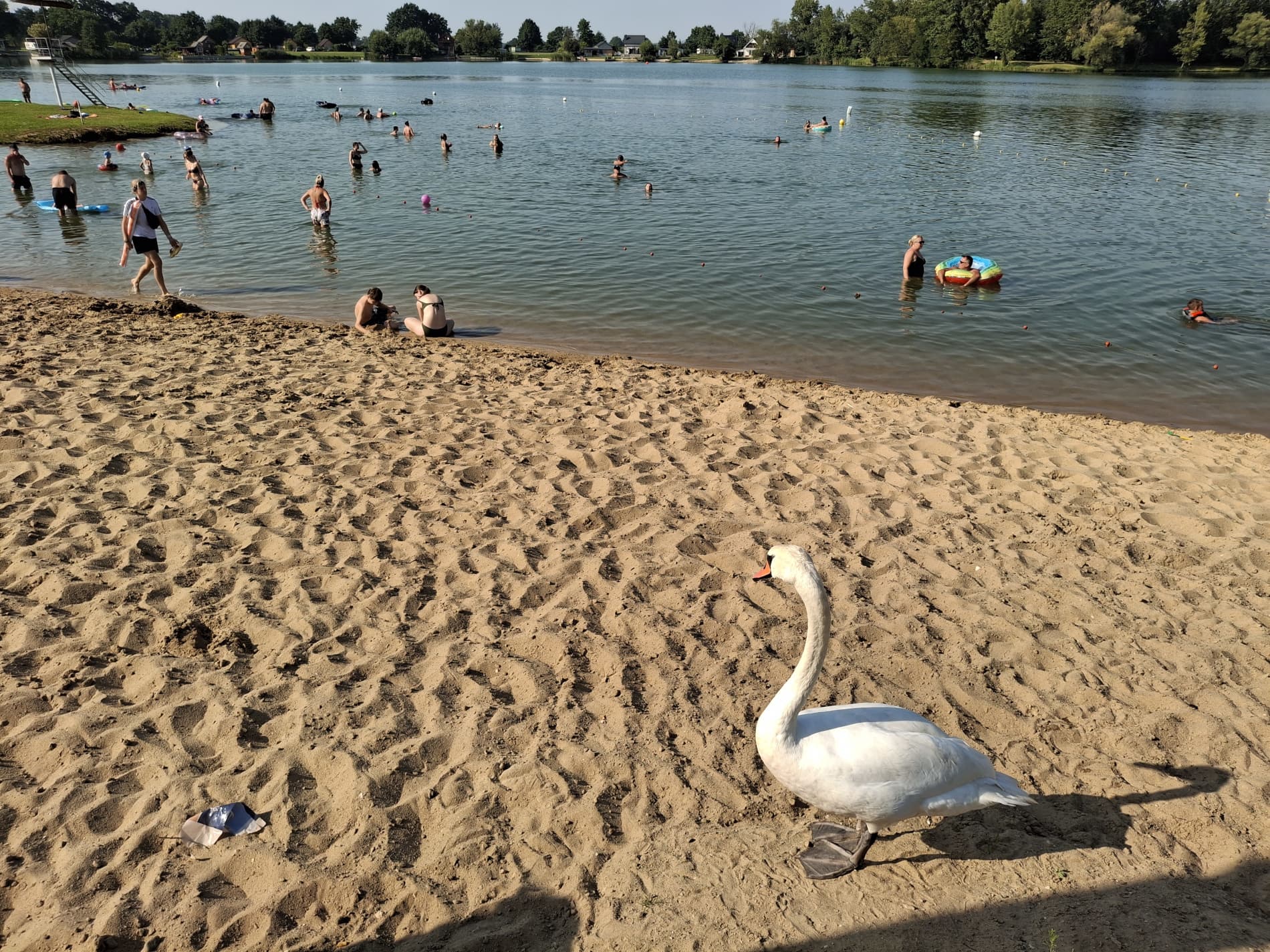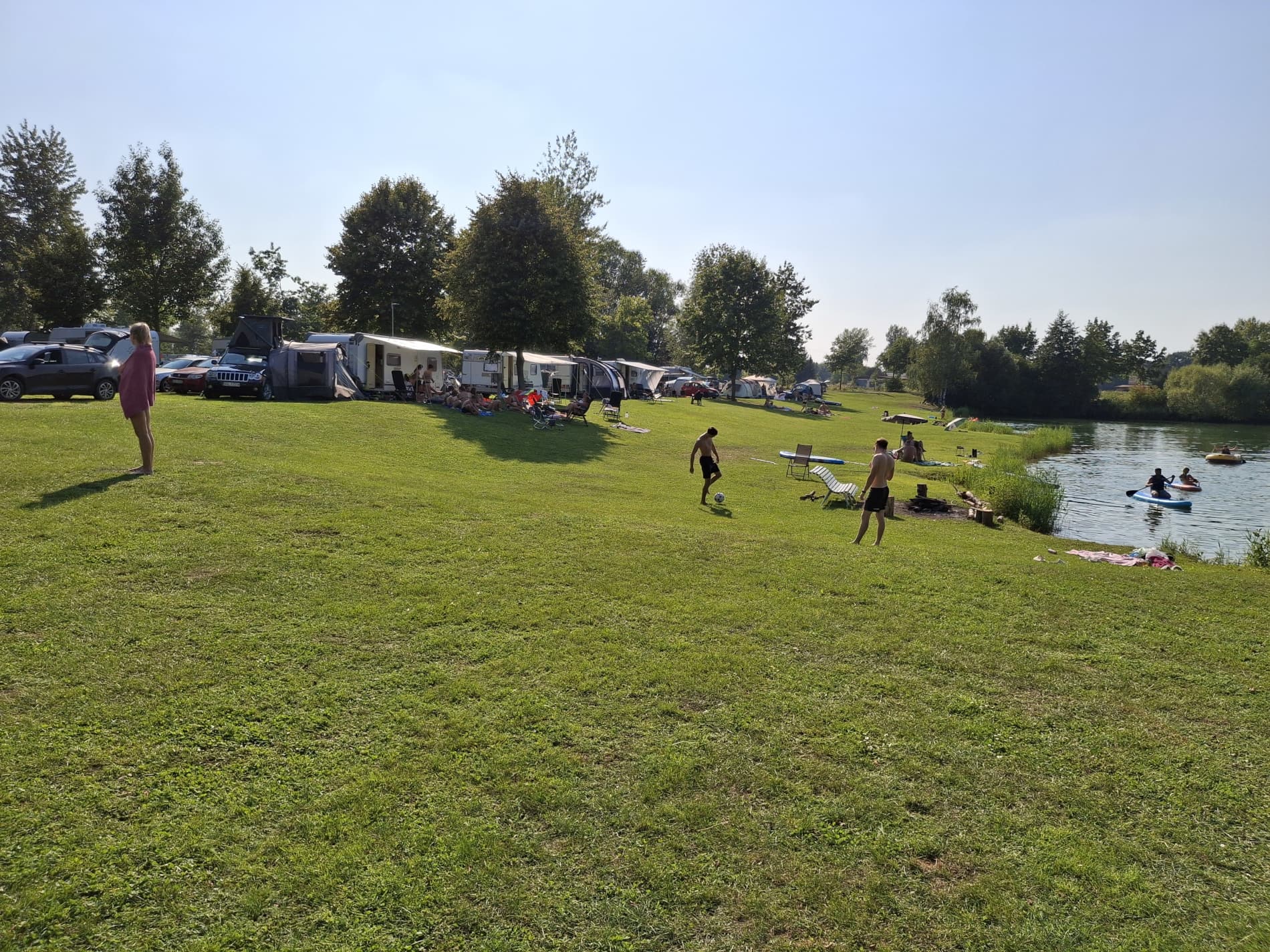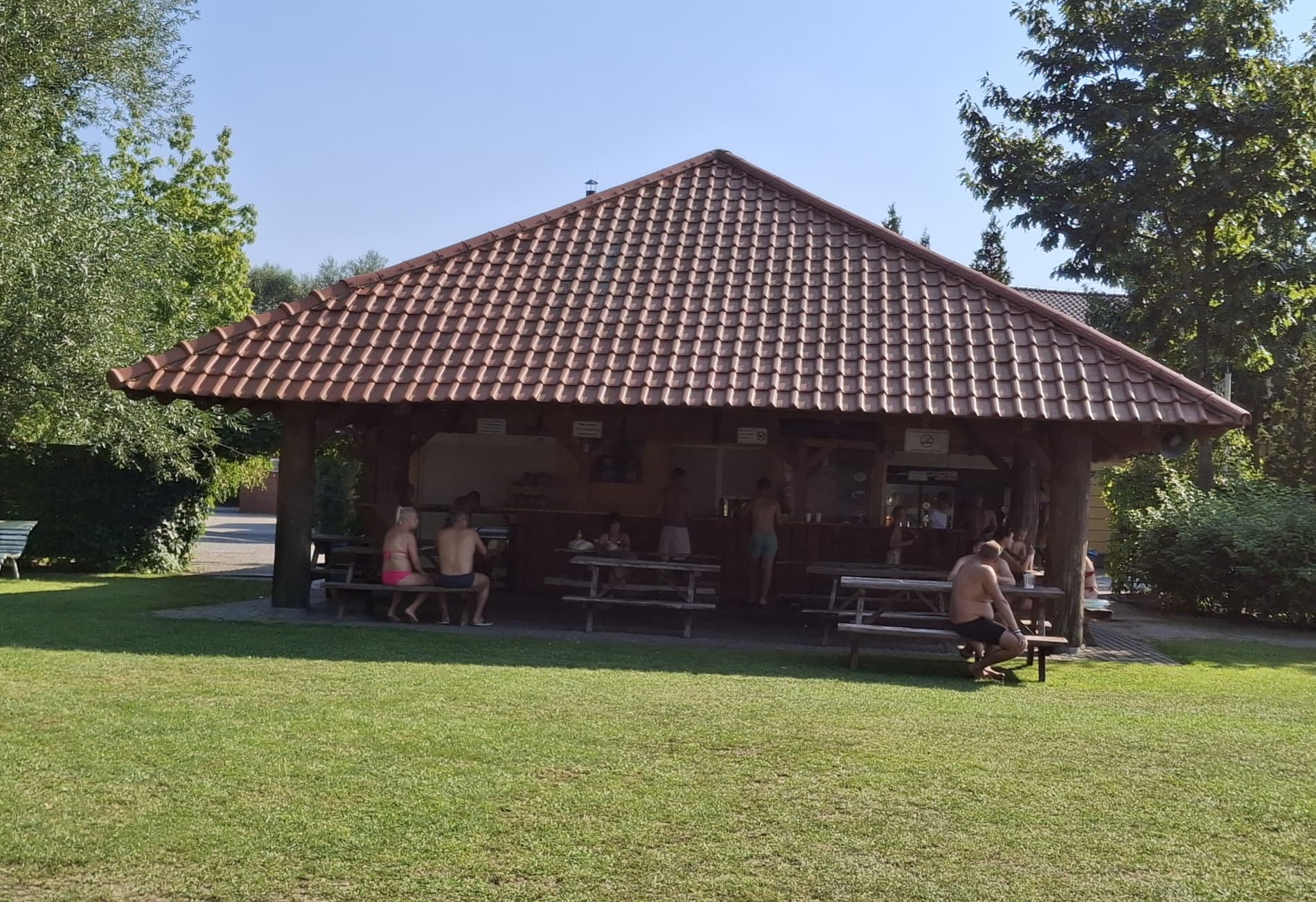 Na tyłach plaży jest boisko do siatkówki plażowej. Południowo-zachodnia część ośrodka to duże pole namiotowo-kempingowe, a przy nim kolejna, nieoficjalna plaża, służąca do okazjonalnych kąpieli oraz wypływania deskami SUP. W cenie wstępu do ośrodka jest: korzystanie z kąpieliska i zjeżdżalni, toalet i zlewozmywaków. Cała reszta jest dodatkowo płatna: noclegi, namioty, śmieci, prąd, wędkowanie, pływanie na własnym sprzęcie, czy też kiepskiej jakości prysznic na żetony. Cały teren ośrodka jest wysprzątany, a trawa przystrzyżona.