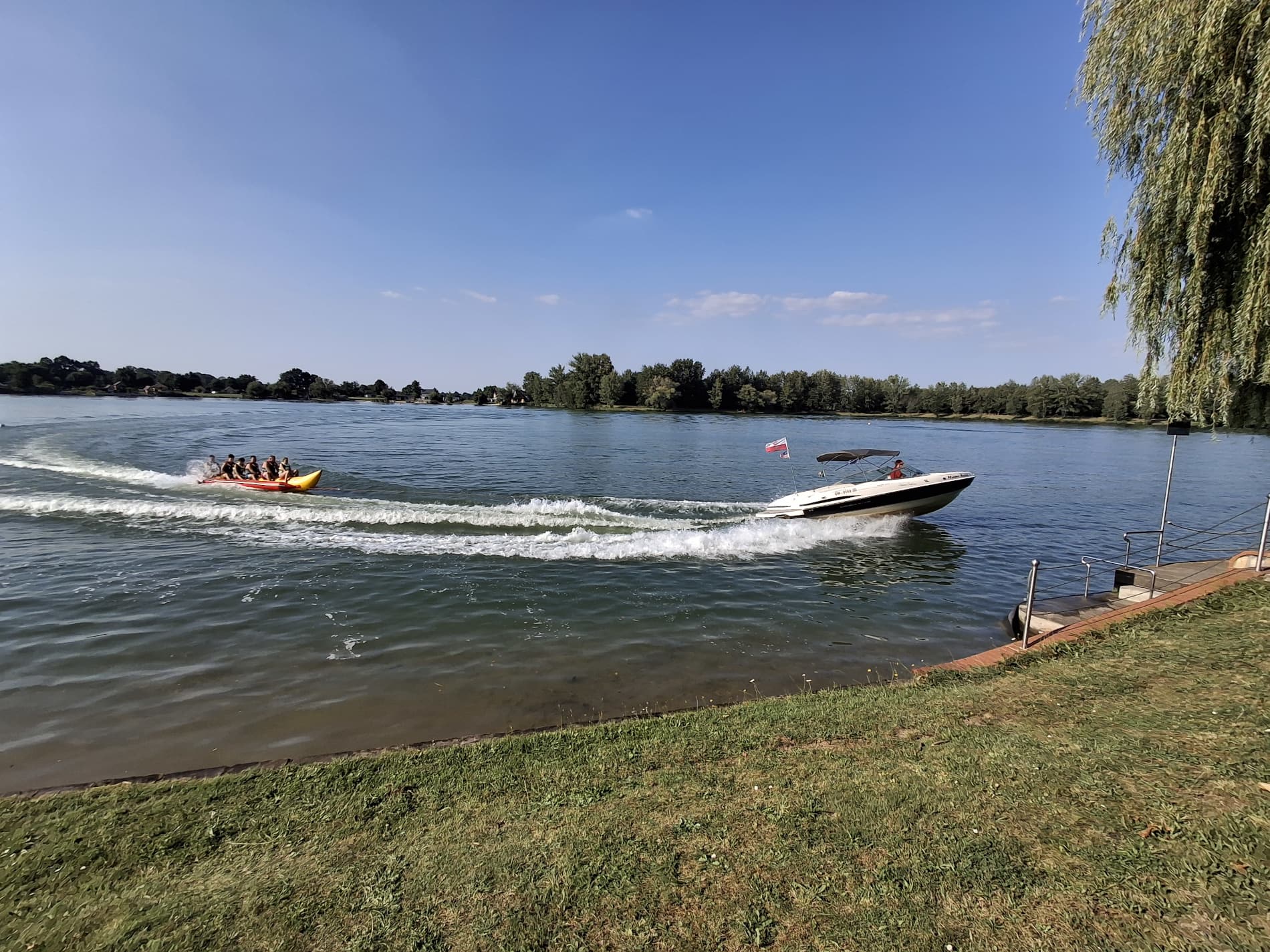 Na wschód od kąpieliska można skorzystać z atrakcji wodnych, jest to wypożyczalnia skuterów, rejs jachtem i motorówką oraz holowanie na nartach wodnych lub gumowym bananie, a także flyboarding. Obowiązuje zakaz zbliżania się łodzi motorowych do kąpieliska. Na tyłach plaży znajdziemy bar z fast-foodem i napojami, jakość posiłków mogłaby być trochę wyższa, ale tragedii nie ma.