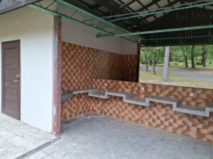 Ośrodek posiada własne miejsca noclegowe oraz miejsce dla kamperów i namiotów, z sanitariatami i przyłączami prądu (wszystko płatne dodatkowo). Jeżeli ktoś chce korzystać z prądu- warto przed przyjazdem wyposażyć się w długi przedłużacz. Na terenie Ośrodka jest mnóstwo wysokich drzew, zapewniających cień. Jest też duża wiata z ławeczkami oraz alejki spacerowe.
