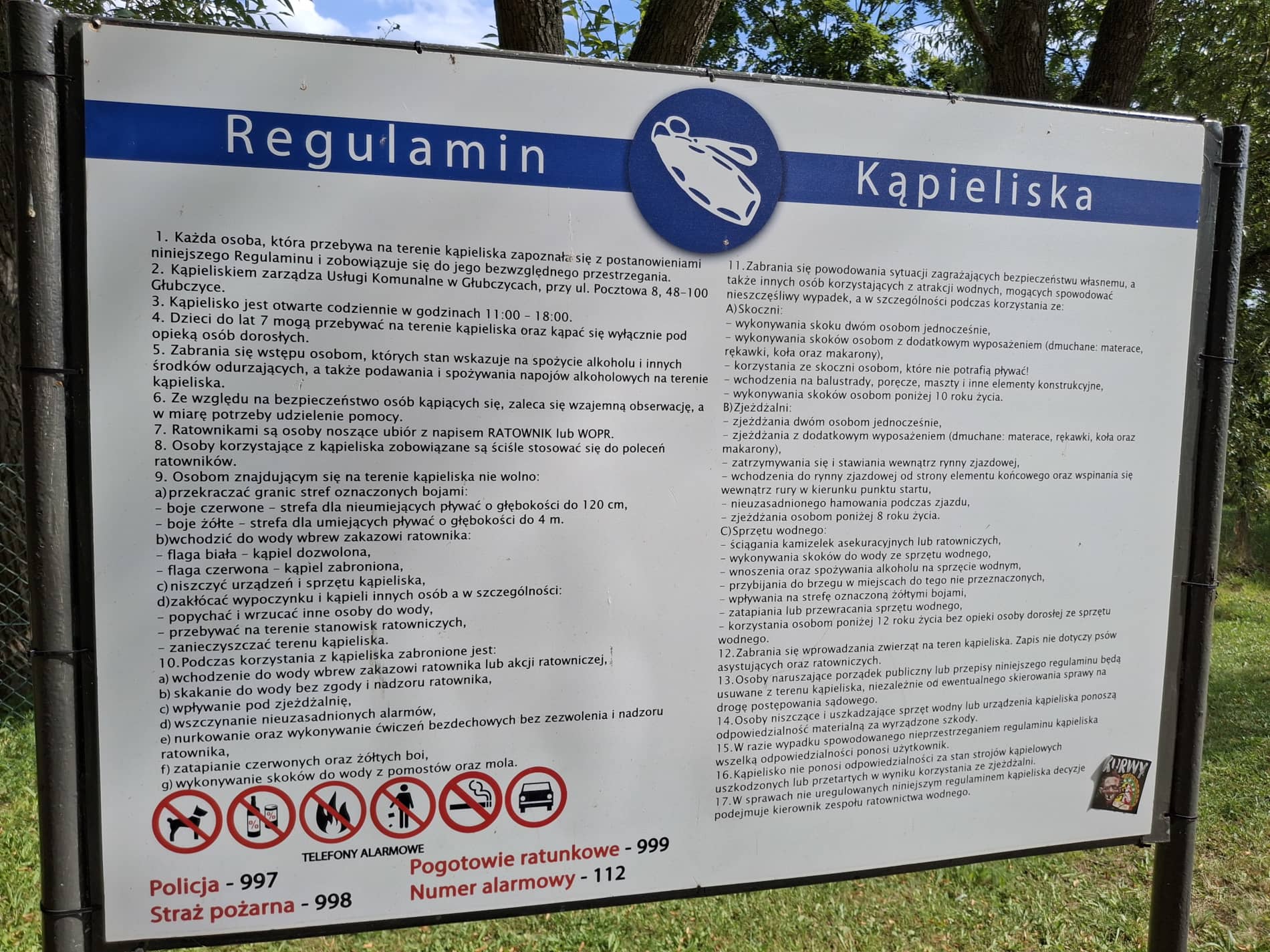 Podczas naszej wizyty duża zjeżdżalnia była zamknięta, a ratownik nie potrafił wyjaśnić czy na stałe, czy tylko czasowo. Podobnie jest z bufetem na tyłach plaży- był nieczynny, ale ponoć w najcieplejsze dni w weekend jest otwarty, wówczas można tam kupić napoje, przekąski i zjeść coś na ciepło. Ogólnie najlepiej przed wizytą w Pietrowicach (zwłaszcza, gdy ktoś jedzie z daleka lub chce zostać na dłużej) zadzwonić do Ośrodka i szczegółowo wypytać o aktualny stan dostępności kąpieliska, zjeżdżalni, skoczni czy bufetu, żeby na miejscu nie doszło do niemiłej niespodzianki.