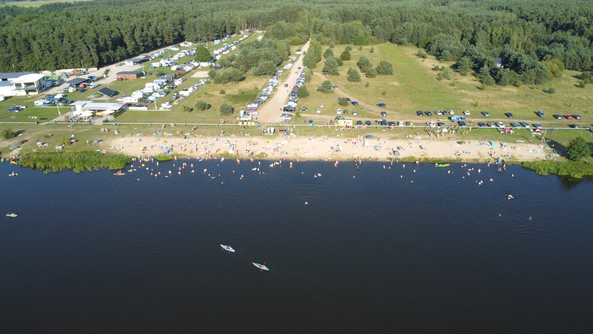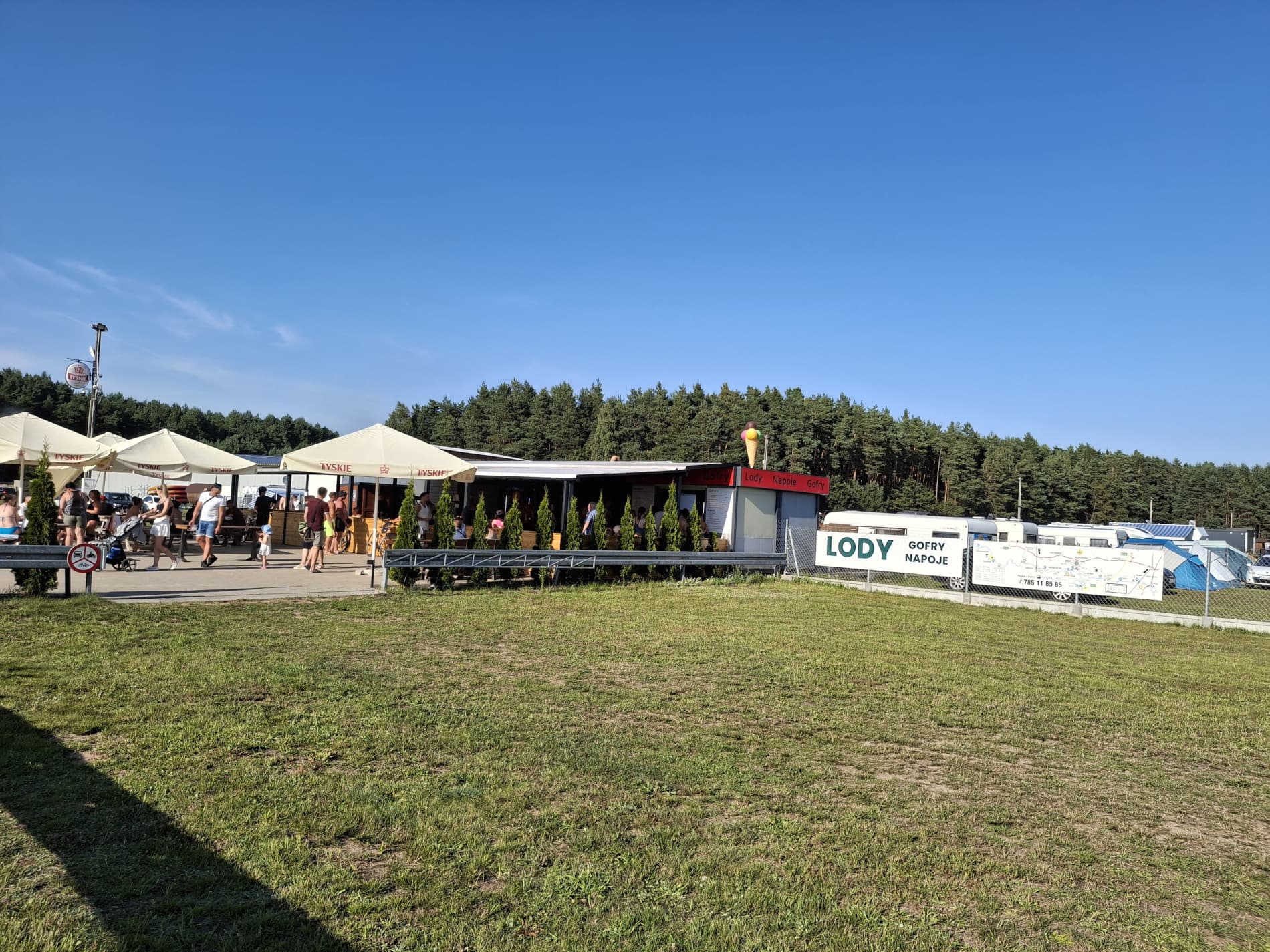 Na tyłach plaży działa ogrodzony, dosyć prężny ośrodek wypoczynkowy, specjalizujący się w dwóch niszach: kempingach oraz kajakach. Można w nim (po uiszczeniu opłaty) przenocować w namiocie lub kamperze, a obsługa zapewnia podstawowe udogodnienia (przyłącza prądu, sanitariaty, Wi-Fi i inne atrakcje). Ponadto ośrodek organizuje grupowe spływy kajakowe (po rzekach Warcie i Liswarcie), a także prowadzi sklep z kajakami i akcesoriami do pływania. Można tam także wypożyczyć (na godziny) kajak lub deskę SUP.