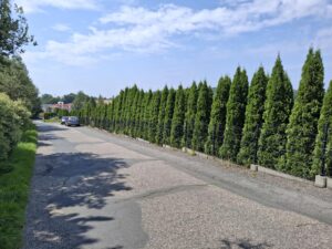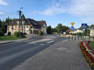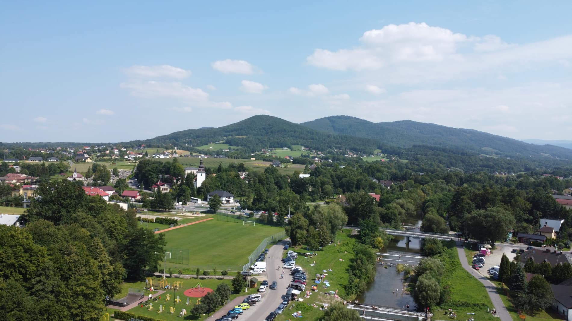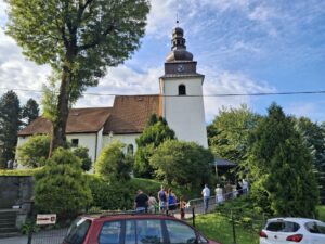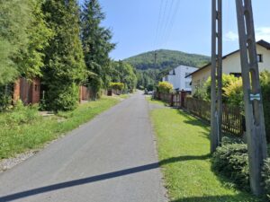 Szlak zielony na Błatnią teoretycznie rozpoczyna bieg przy dworcu kolejowym w Skoczowie, ale przez pierwsze 6km wiedzie po płaskich ulicach miasta oraz asfaltowymi ścieżkami pieszo-rowerowymi wzdłuż rzek Wisły i Brennicy. Etap „górski” zaczyna się dopiero w centrum Górek Wielkich. Przy rondzie (fot.1) u zbiegu ulic Zofii Kossak, Bielskiej, Breńskiej i Zalesie jest przystanek autobusowy na popularnej linii z Cieszyna do Brennej. W okolicy sporo jest bezpłatnych parkingów, np. przy pawilonach obok ronda, a także na poboczach po obu stronach ulicy Sportowej (fragment widać na zdjęciu powyżej) oraz obok kościoła pw.Wszystkich Świętych (fot.2). Obok mostu nad Brennicą jest też parking płatny (niestrzeżony), ale ceny kilkugodzinne są dosyć zbójnickie. Najlepszym miejscem parkingowym, leżącym na samym szlaku jest pobocze ulicy 'Pod Zebrzydkę’ przy płocie cmentarza ewangelickiego (fot.3)- tam zawsze są wolne miejsca, nawet w upalne weekendy, gdy centrum Górek jest zawalone samochodami plażowiczów z pobliskiego rzecznego kąpieliska nad Brennicą. Przy wejściu głównym na cmentarz (od strony ul.Bielskiej) też jest parking. Ogólnie rzecz biorąc, sytuacja parkingowa w tej okolicy jest doskonała.