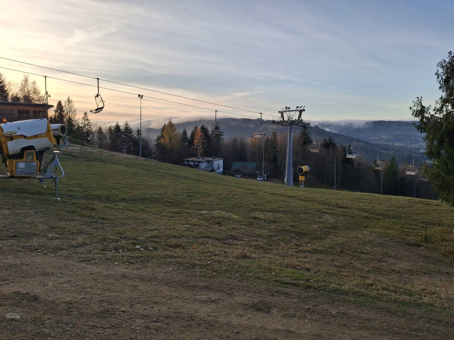 Zaczynamy na południowym końcu ulicy Na Stoku. Po przejściu mostem przez Wisłę (fot.4) szlak wiedzie ulicą z betonowych płytek (fot.5). Po chwili miniemy dolną stację ośrodka narciarskiego, a szlak skieruje się w stronę stoku (fot.6). W okolicy ośrodek (rozszerzając ofertę na sezon letni) wytyczył kilka downhillowych tras rowerowych, ale są one odseparowane od ruchu pieszego, jednak w górach zawsze trzeba zachować czujność. Następnie szlak przecina stok narciarski (fot.7) i przechodzi na jego zachodnią stronę. Jak pisałem wyżej- w dniach „narciarskich” nie przejdziemy tędy i trzeba zacząć wędrówkę z drugiej strony, ulicą Wróblonki. Po przejściu na drugą stronę stoku dojdziemy właśnie do ulicy Wróblonki (fot.8), wyłożoną znajomymi betonowymi płytkami. Następnie szlak przechodzi przez osiedle (głównie nowszych) domków (fot.9), część z nich jest do wynajęcia krótkoterminowego. Za tymże osiedlem, u stup góry Grapa jest górna stacja wyciągu (fot.10), a szlak żegna się z cywilizacją. Dalsza część (już do samego końca) to klasyczna ścieżka górsko-leśna.
